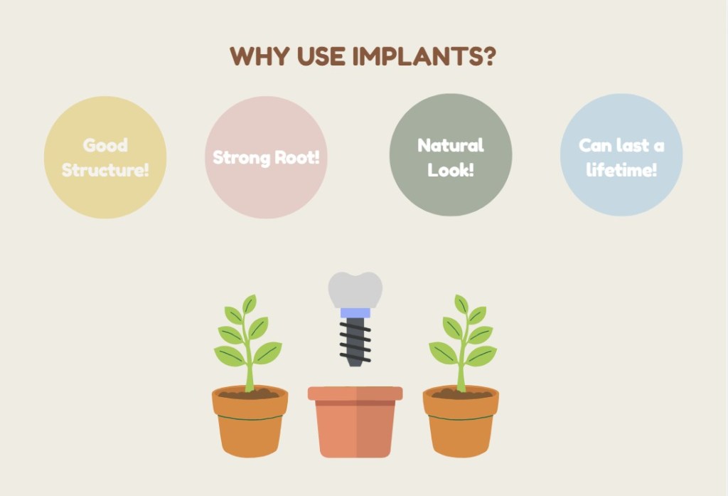 Implants can be the best treatment plan when patients loses a tooth or several teeth. Some people have ill fitting dentures, and an implant can help stabilize and retain the dentures. By using implants people can replace a missing tooth while also keeping other teeth in place.